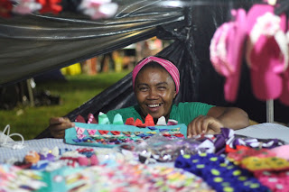 | A sertaneja Maria Célia levou artesanato para a Feira Camponesa. |