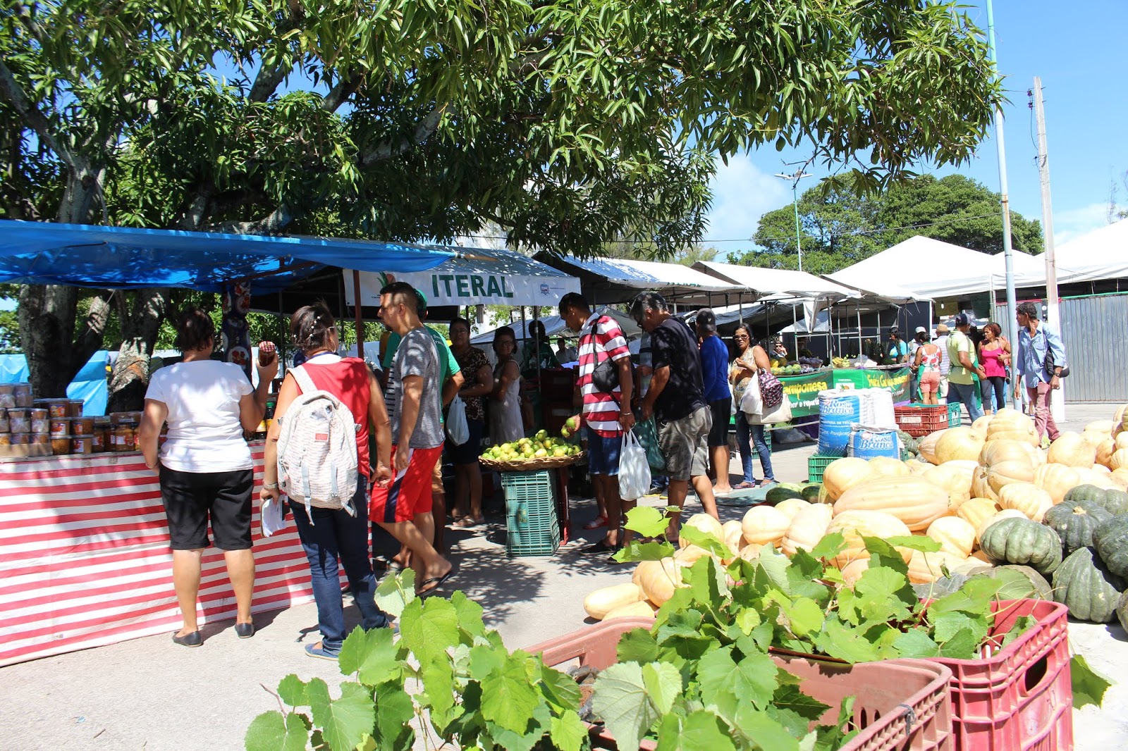 Visite a feira e adquira banana, abacaxi, milho, coco verde, macaxeira, batata doce, mel, pimenta e muito mais!
