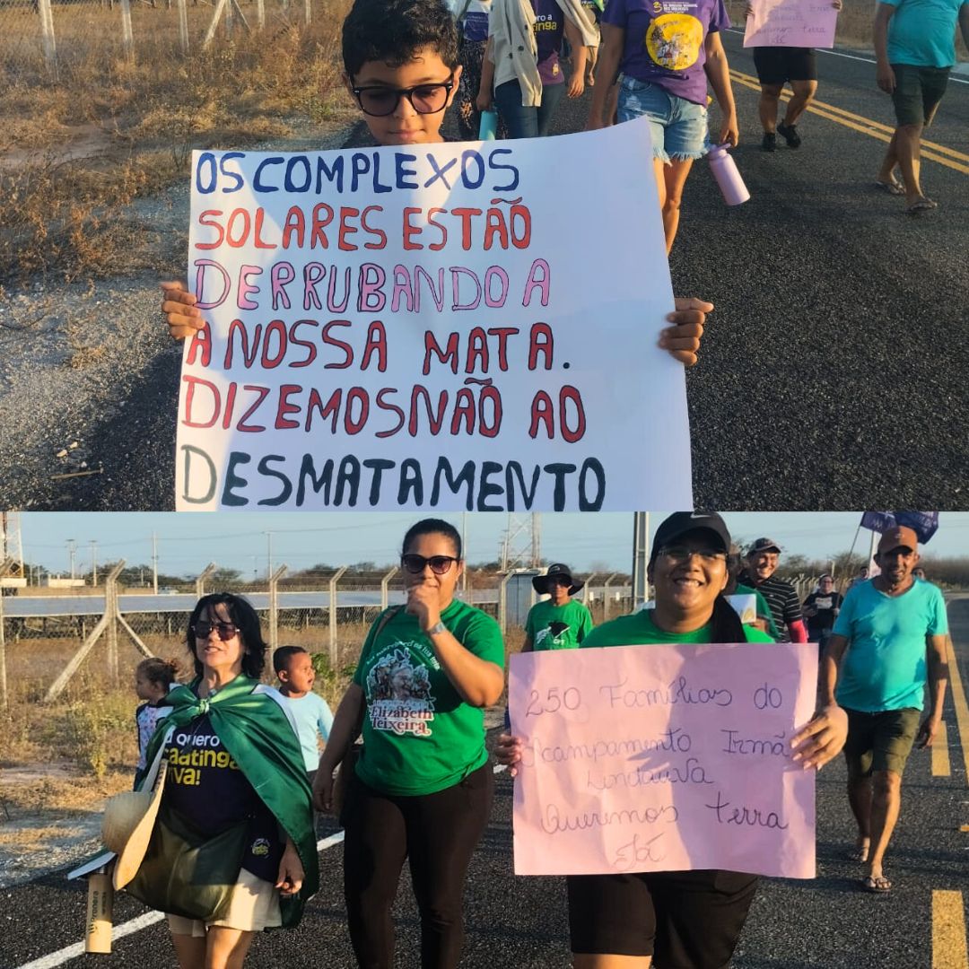 Para Vanúbia de Oliveira, Coordenadora Regional da CPT Nordeste 2, o protesto revela a força das mulheres frente à devastação causada pelos grandes empreendimentos de energias renováveis. “O acampamento Irmã Lindalva vem sendo impactado totalmente pelas placas solares. Isso significa que a área do entorno já recebeu veneno, foi devastada e ainda pode aquecer até 4ºC. Nesse local, existem assentamentos e produção de alimentos. Então, uma região que já é quente pode se tornar ainda mais quente com a ampliação desse tipo de empreendimento. Com a força que têm, as mulheres denunciam quando não há mais espaço de vida, de moradia, quando vai faltar alimento para seus filhos e filhas. Acreditamos numa real e justa transição energética, sem ocupar e devastar os territórios camponeses.”