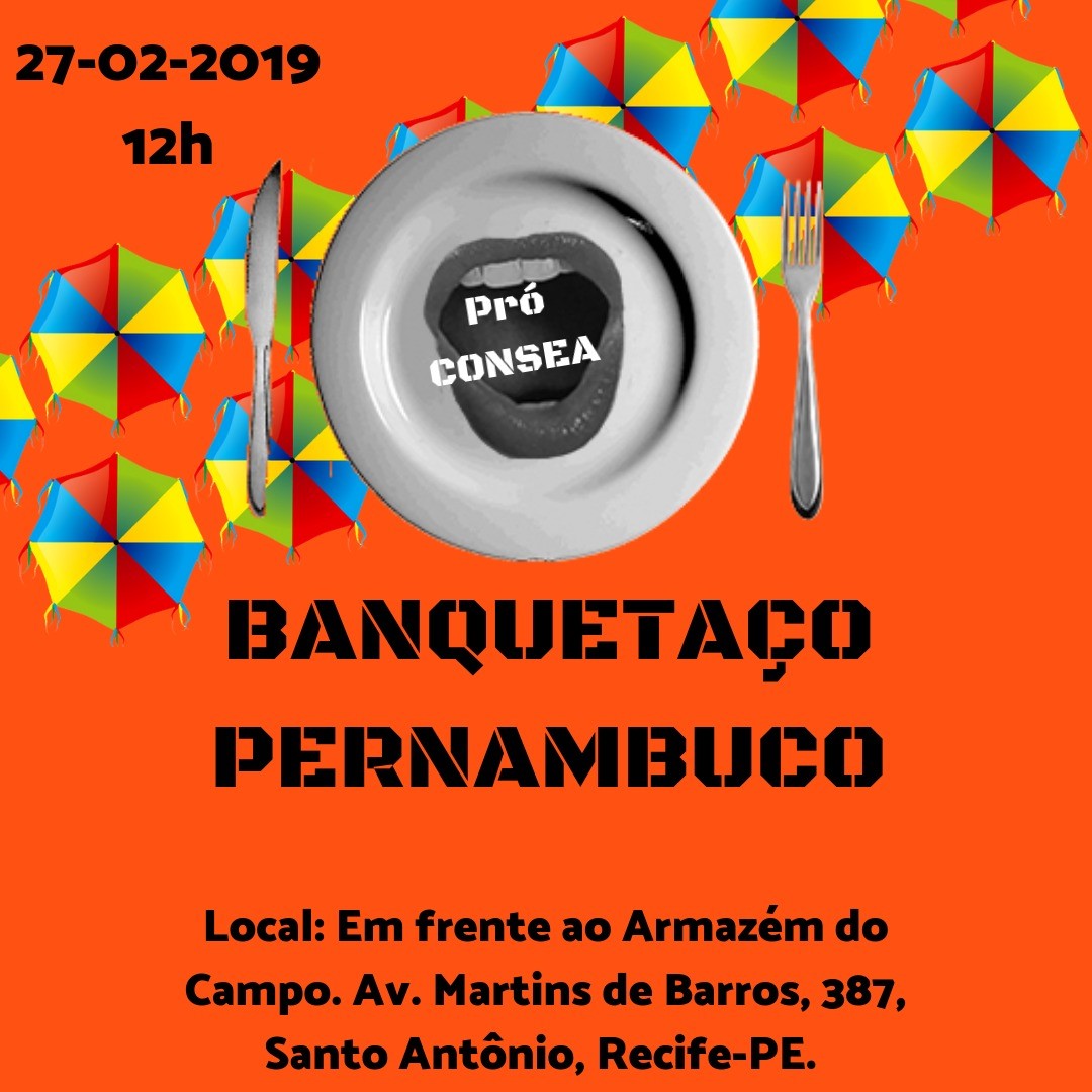 No dia 27 de fevereiro (quarta-feira) será realizado um grande banquete coletivo em mais de 15 cidades de todo o país. Desta vez o Banquetaço vai pedir a manutenção do CONSEA (Conselho Nacional de Segurança Alimentar e Nutricional), extinto pelo atual governo, através da Medida Provisória Nº 870/2019, no primeiro dia do ano. A iniciativa prevê a distribuição de mais de 15 mil refeições em todo o país, em sua maior parte preparadas com produtos da agricultura familiar e agroecológica.