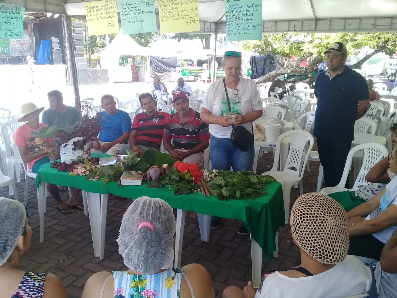 | Domenica Didier faz a oficina de PANC com os feirantes |